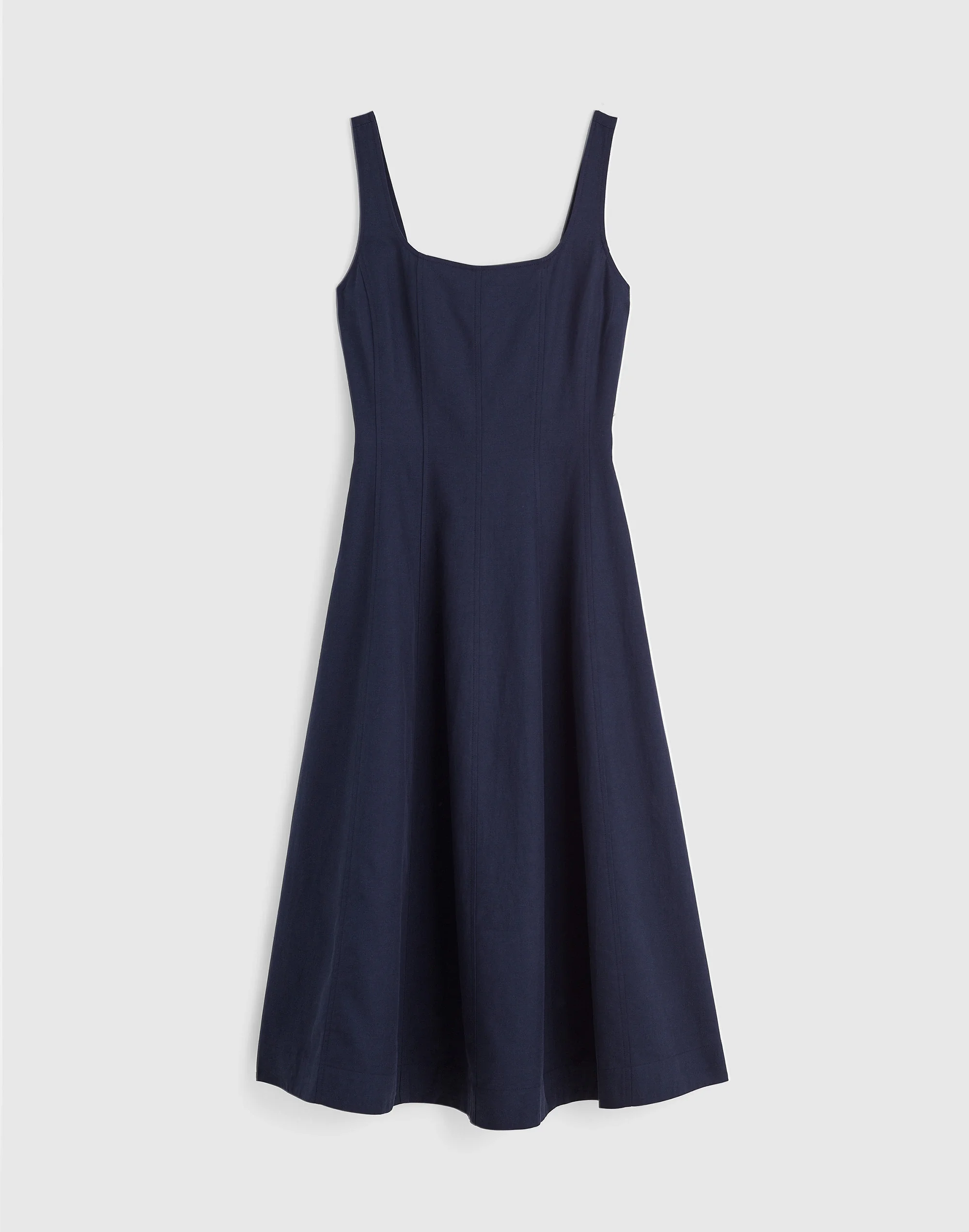 Crafted from our favorite TENCEL™ Lyocell twill, this midi dress features a square neckline and tailored seaming that creates a voluminous hem. Perfect for effortlessly transitioning from day to night. - Fitted bodice. - Falls 52" from high point of shoulder (based on size 6). - 48% TENCEL™ lyocell/33% cotton/19% linen. - Machine wash. - Imported. - Select stores. - Item NU559