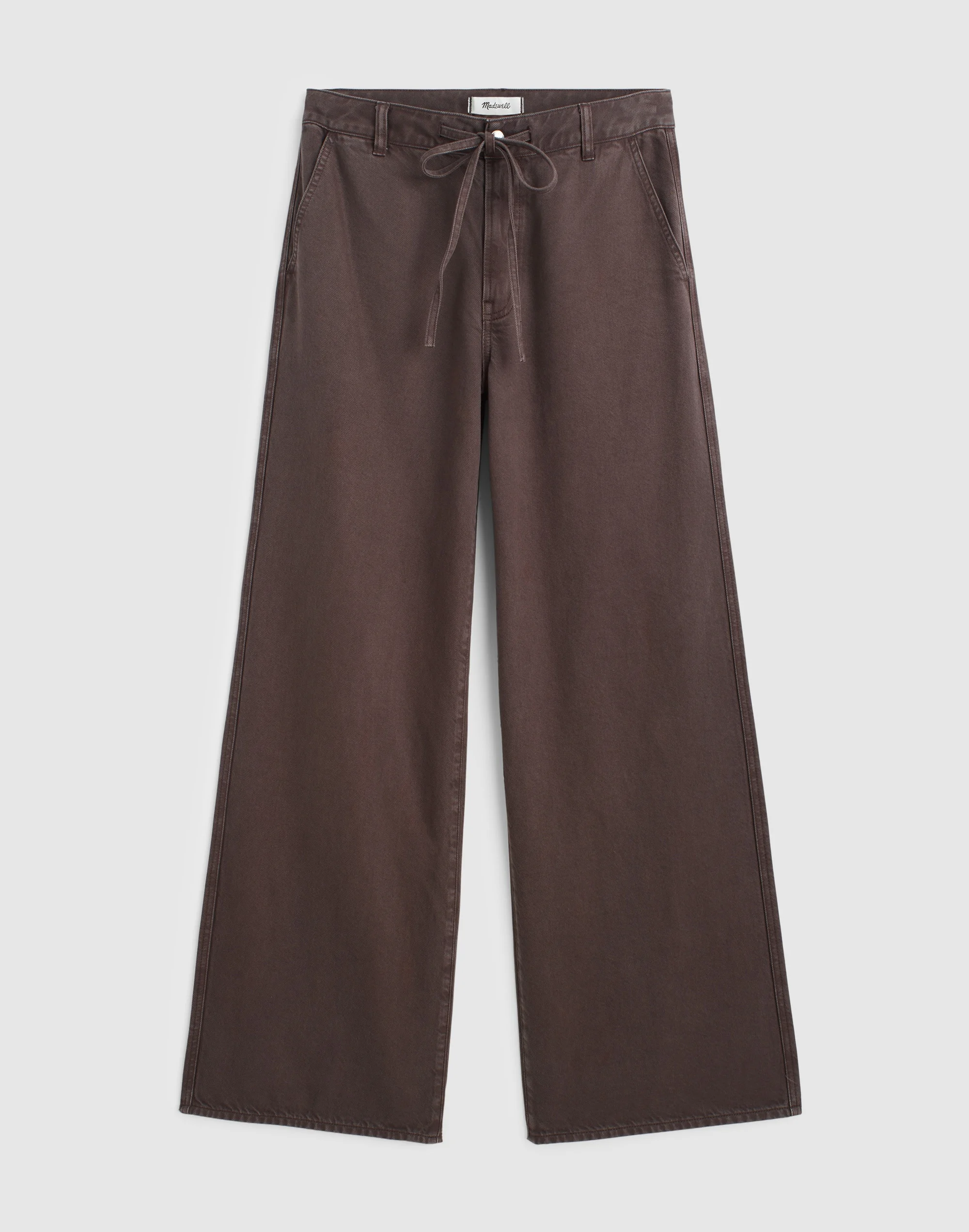 Coming in our soft and drapey Airy Denim, these drawstring pants are fitted through the hip and thigh with a just-perfect wide leg and full-length inseam. Perfect to wear from work to dinner, they look exceptionally good—especially when paired with our matching utility jacket. - Garment dyed for a soft, lived-in feel. - Please note: tags on this garment are intentionally dyed due to the authentic garment-dyeing process. - 11 1/4" rise, 22 1/2" leg opening, 31" inseam. - 59% cotton/41% lyocell. - Machine wash. - Imported. - Item NZ211