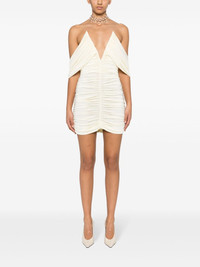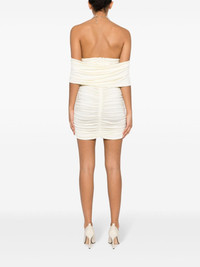 off-shoulder ruched minidress Magda Butrym's statement aesthetic is evidenced with this minidress. Itâs crafted from stretch jersey with considered ruching and framed with sculptural off-shoulder sleeves. Highlights - Cream white - Stretch-jersey - Ruched detailing - Plunging v-neck - Rear zip fastening - Off-shoulder - Short draped sleeves - Silk lining - Thigh-length - Curved hem Imported Composition Outer: Viscose 95%, Elastane 5% Lining: Silk 100% SIZE & FIT Model measurements Height 5 ft 10 in(1.77 m) Bust/Chest 30.7 in(78 cm) Hips 35.43 in(90 cm) Waist 24.4 in(62 cm) FittingInformation Designed for a close fit throughout Made from a midweight stretch fabric, this piece offers elasticity and flexibility when worn This piece fits true to size – take your usual size