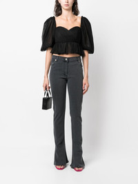 mid-rise flared jeans Highlights - Charcoal grey - Stretch-cotton - Denim - Mid-rise - Logo patch to the rear - Belt loops - Flared - Concealed fly and button fastening - Two side slash pockets Imported Composition Cotton 99%, Spandex/Elastane 1% SIZE & FIT Model measurements Height 5 ft 9 in(1.76 m) Bust/Chest 33.07 in(84 cm) Hips 34.64 in(88 cm) Waist 25.59 in(65 cm) Measurement FRONT RISE 10.23 in(26 cm) HIPS 35.43 in(90 cm) WAIST 33.85 in(86 cm) FittingInformation Designed for a skinny fit, these jeans offer a close fit throughout Constructed from stretch denim, this piece offers a stretch fit with durability This piece fits true to size – take your usual size Washing instructions Machine Wash
