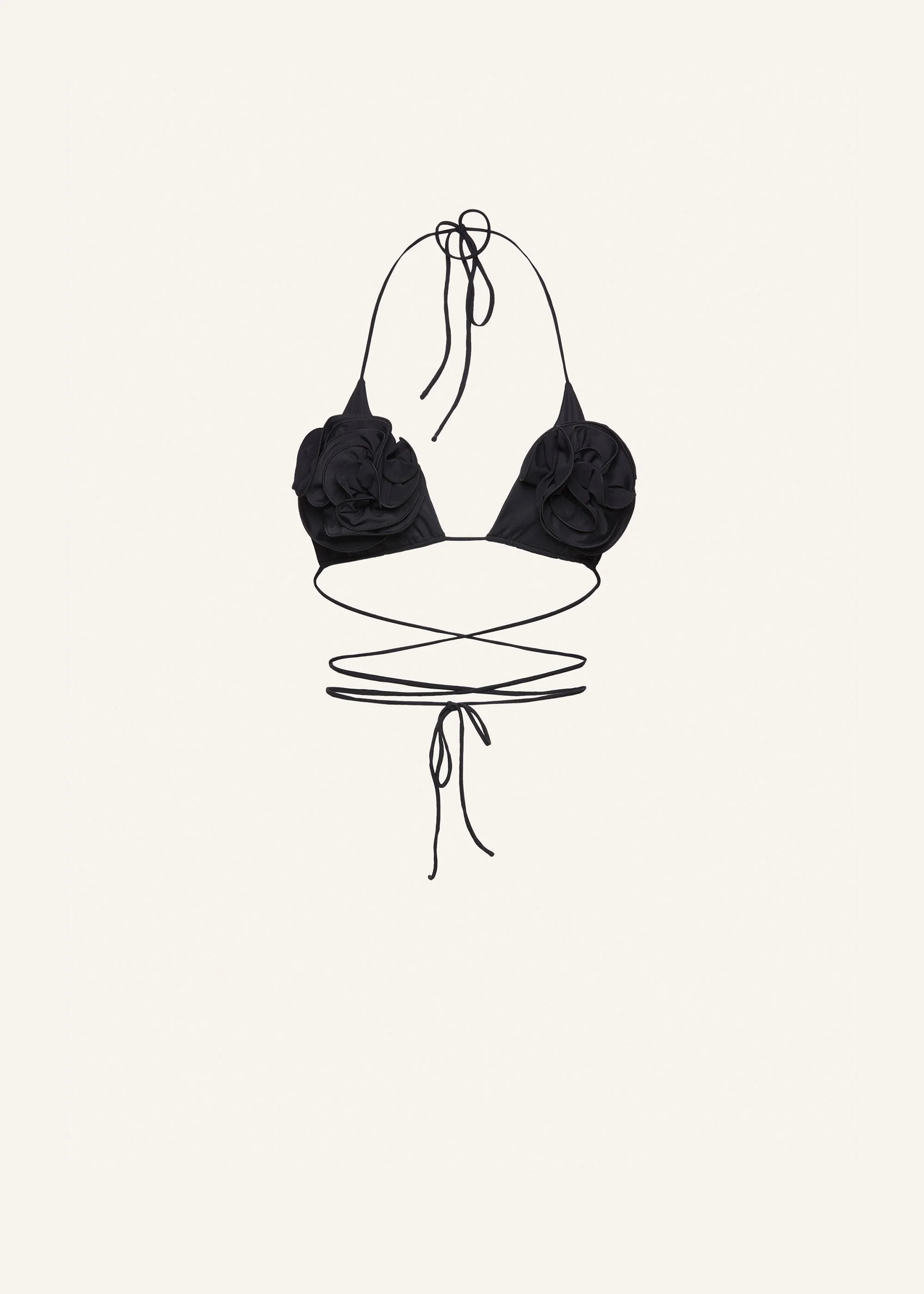 A classic triangle top with 3D floral embellishment on each cup, creating a signature Magda Butrym look. Extra long straps create a crisscross at the waist, with non-padded adjustable triangle cups at the bust. Details ID: 801522 Shell 75% Polyamide 25% Elastane. Sizing This piece fits true to size. We recommend you get your regular size. Model is 175cm and is wearing a size 34.