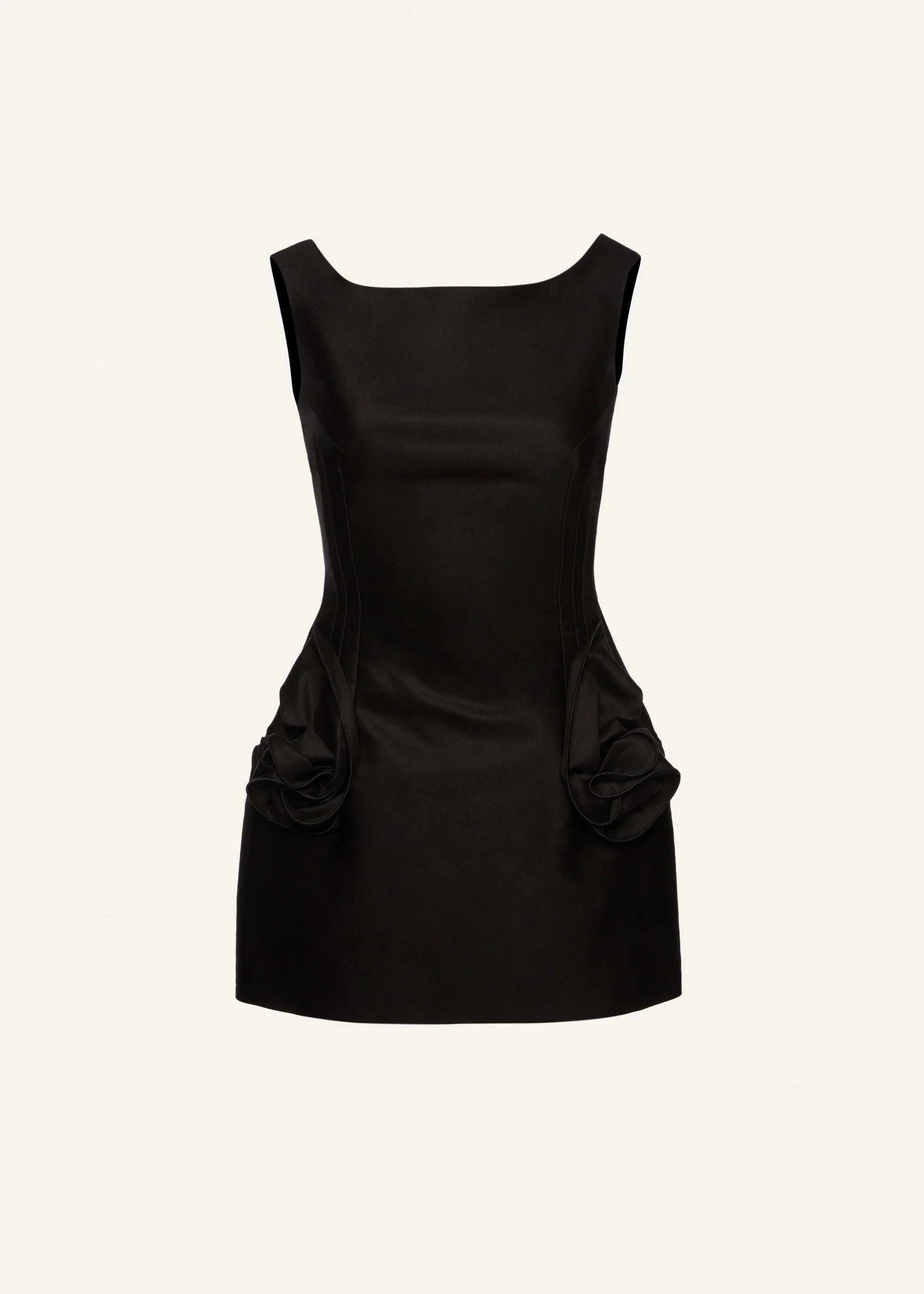 A fitted sheath mini dress with a structured shape offering a subtly flared skirt with rose applique detailing at the hips and a high-neckline. Details ID: 127725 Shell 100% Cotton. Lining 100% Silk Sizing This piece fits true to size. We recommend you get your regular size. Model is 180 cm and is wearing a size 34.