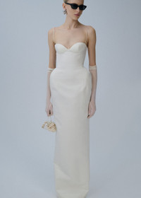 A silk maxi dress with a feminine hourglass shape, created through a sweetheart bra with a fitted bodice and hip pads. Details ID: 249725 Shell 72% Viscose 28% Silk. Lining 100% Silk. Sizing This piece fits true to size. We recommend you get your regular size. Model is 180 cm and is wearing a size 34.