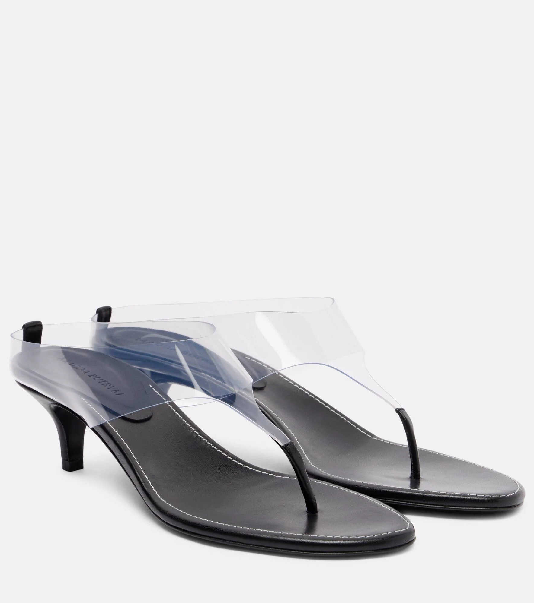 Shaking up the industry with its biting modernity and artisanal excellence, Magda Butrym exists to empower. Inspired by the early aughts, these thong sandals have transparent vamps that are set atop 45mm leather kitten heels. Product Details - Upper: rubber, leather - Lining: rubber, leather - Sole: leather insole and sole - Toe shape: almond open toe - Made in Italy - Includes: shoe box - Designer color name: Natural - Item color: transparent - Item number: P01081321 Size & Fit - True to size - Slightly narrow at the back - European sizes - 4,5cm-2" heel (size EU 38)