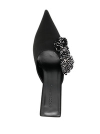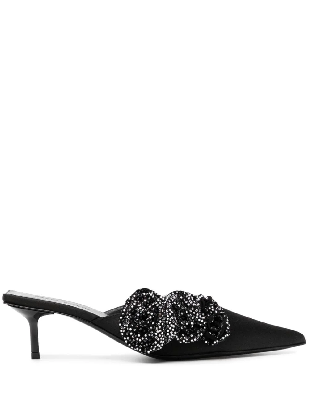 50mm crystal-embellished leather mules Highlights - Black - Satin finish - Crystal embellishment - Floral applique - Pointed toe - Low heel - Branded leather insole - Leather sole Made in Italy Composition Silk 100%