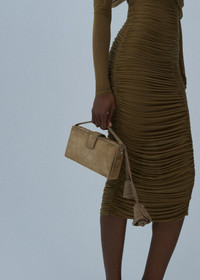 Apolonia bag in beige suede with flower charm