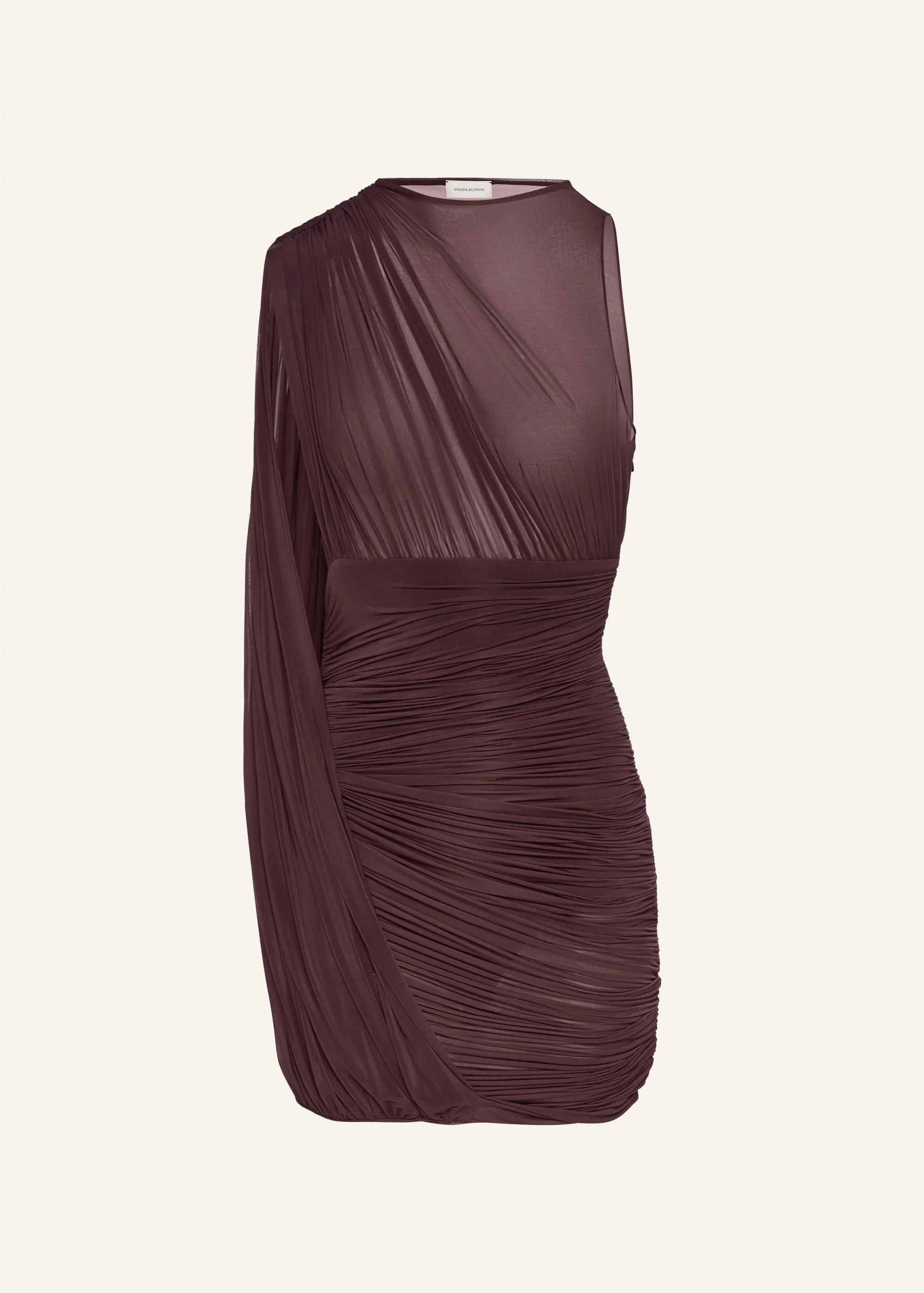 Sheer draped mini dress in bordeaux