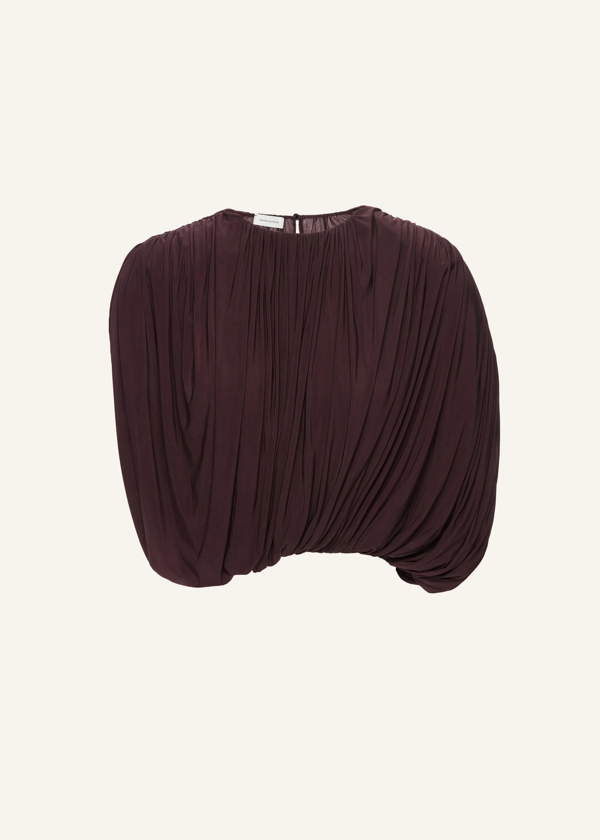 A sleeveless top with a round neckline and voluminous silhouette, created by heavy ruching at the shoulders and hem. Structured with shoulder padding and a gathered bubble hemline. The hem is cinched with elastic band. Details ID: 207925 Shell 92% Cupro 8% Elastane Sizing This piece fits true to size. We recommend you get your regular size. Model is 177 cm and is wearing a size 34.