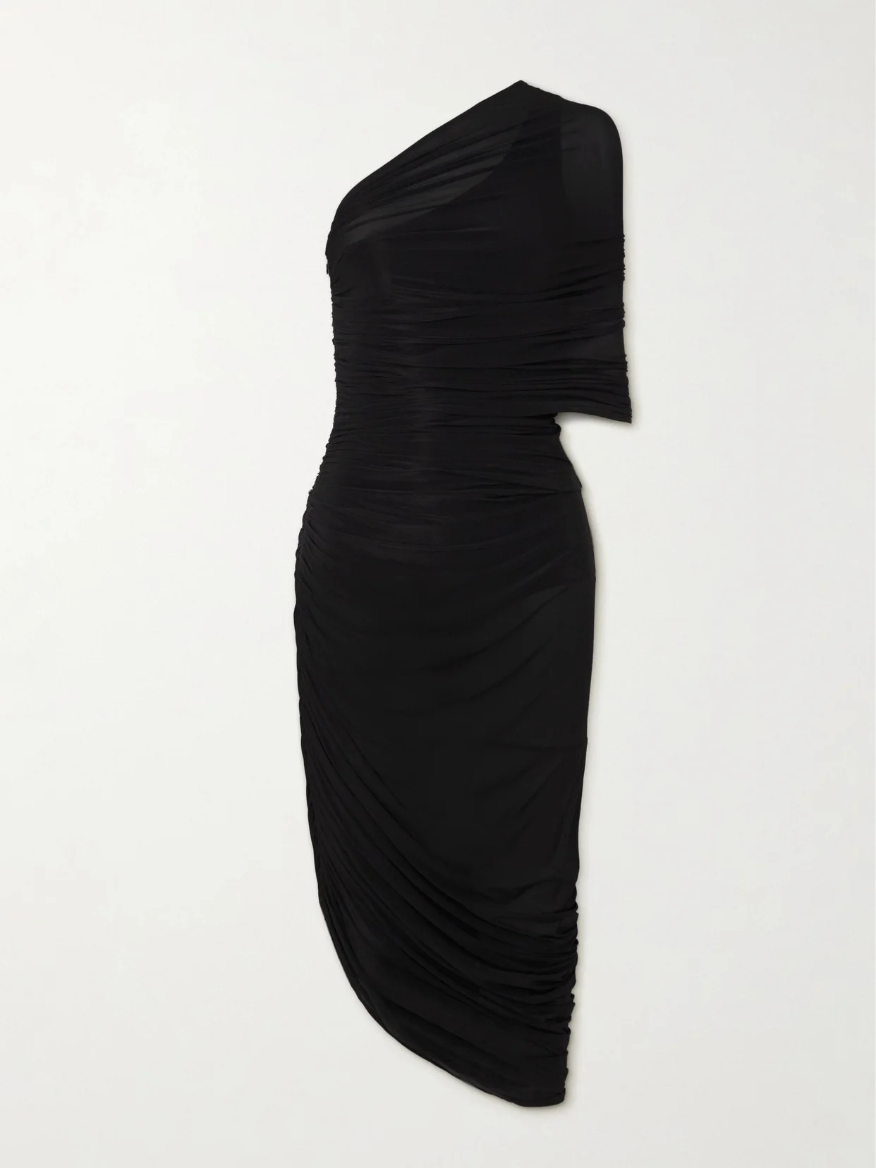 Magda Butrym's midi dress is cut from sheer stretch-jersey that's ruched along the side to enhance the figure-hugging profile. It has an elegant one-shoulder neckline, single sleeve and corresponding asymmetric hem. Underpin yours with a tonal bodysuit.