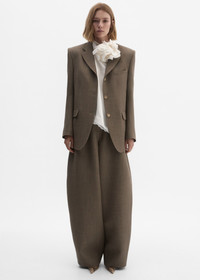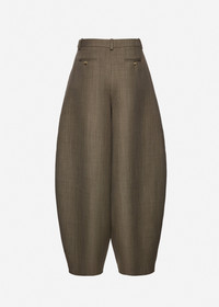 These wool trousers feature a voluminous balloon-leg silhouette that tapers gracefully toward the ankle. Designed with side slit pockets and welt back pockets secured with buttons. They offer a modern reinterpretation of classic tailoring with architectural volume. Details ID: 270426 Shell 100% Wool Lining 100% Silk Sizing This piece has a regular fit. Model is wearing a size 34.