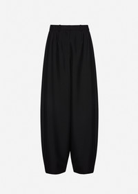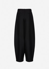 These wool and mohair trousers feature a voluminous balloon-leg silhouette that tapers gracefully toward the ankle. Designed with side slit pockets and welt back pockets secured with buttons. They offer a modern reinterpretation of classic tailoring with architectural volume. Details ID: 185426 Shell 59% Wool 44% Mohair. Sizing This piece has a regular fit. Model is wearing a size 34.