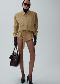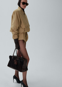 Magda's signature oversized bomber shape, crafted from technical cotton for a casual and cool look. Features an elastic waistband and slanted front pockets. Details ID: 186425 Shell 71% Cotton 29% Polyamide.Lining 100% Cashmere.100% Silk. 85% Silk 15% Elastane. Sizing This piece fits true to size. We recommend you get your regular size. Model is 180 cm and is wearing a size 34.