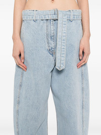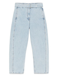 belted straight-leg jeans Highlights - Light blue - Front button and zip fastening - Belt loops - Detachable and adjustable waist belt - Contrast stitching Imported Composition Cotton 100% SIZE & FIT Model measurements Height 5 ft 10 in(1.78 m) Bust/Chest 29.92 in(76 cm) Hips 34.64 in(88 cm) Waist 24.8 in(63 cm) FittingInformation Designed with a wide leg cut, these jeans allow for a close fit at the waist and offer a loose and roomy fit over the leg The belt offers adjustability for fitted preferences Sturdy and hard-wearing, this denim piece offers no stretch This piece fits large – take one size down