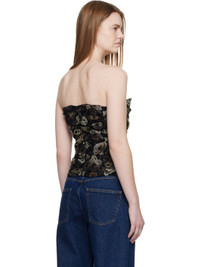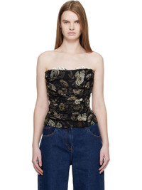 Silk chiffon top. · Ruching and boning throughout · Floral pattern printed throughout · Straight neck · Concealed zip closure at back · Integrated bra with lace detailing at interior · Stretch silk lining Supplier color: Black Body: 100% silk. Lining: 90% silk, 10% elastane. Made in Poland 252533F111004