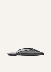 Flat mules featuring a delicate mesh design adorned with crystals. The slip-on style offers comfort and ease. Perfect for both casual and evening wear. Details ID: 642525 Upper: Pa 100%. Insole, Sole: Calf Leather 100%