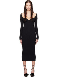 Black Rib-Knit Bustier Maxi Dress