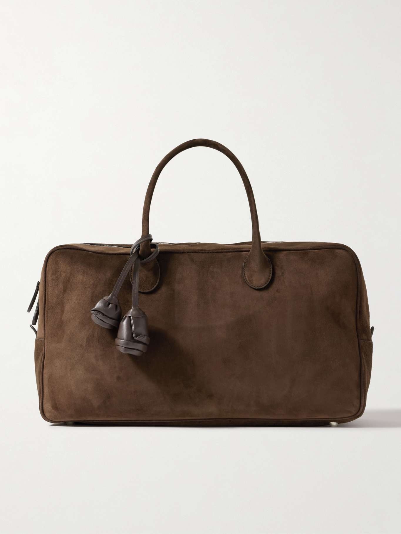 EDITORS'NOTES Magda Butrym's tote ensures your overnight essentials are packed in style. It's been made in Italy from velvety brown suede and has signature leather rosette charms affixed to one handle. The canvas-lined interior will fit a change of clothes, shoes and toiletries. SIZE & FIT This item’s measurements are: - Handle Drop: 19cm / 7.5in - Depth: 18cm / 7.1in - Height: 45cm / 17.7in - Width: 26cm / 10.2in DETAILS & CARE - Brown suede and leather (Calf) - Two top handles - Internal slip and zip pocket - Canvas lining - Two-way zip fastening along top - Comes with dust bag - Weighs approximately 5.1lbs/ 2.3kg