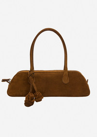 Defined by its elongated, architectural proportions, this version is crafted in soft suede, and adorned with the signature handmade rose charm introduced for Pre-Spring 2026. Details ID: 900426 Exterior: 100% Calf Leather. Interior: 44% Cotton 44% Linen 12% Polycarbonate Sizing Approximate measurements: 14,5cm height, 18cm width, 5cm depth (at bottom), 10cm handle drop.