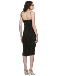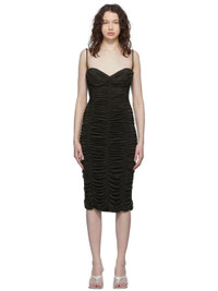 Sleeveless stretch viscose jersey mid-length dress in brown. Ruching throughout. · Elasticized spaghetti straps · Sweetheart neckline · Padded cups · Concealed zip closure at back · Unlined Supplier color: Brown