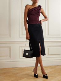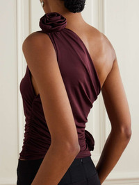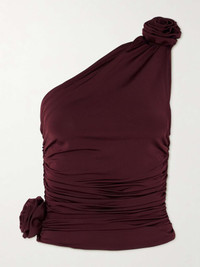 EDITORS'NOTES Magda Butrym's top is instantly recognizable thanks to the rose applique on the shoulder strap and side. It’s made from satin-jersey in a one-shoulder design with artful ruching through the front. Style yours with one of the brand’s matching pants. SIZE & FIT Model measurements: - Fits true to size, take your normal size - Designed for a close fit - Lightweight, stretchy fabric - Model is 180cm/ 5'11" and is wearing a FR 36 - Bust: 76cm/ 30" - Waist: 64cm/ 25" - Hip: 86cm/ 34" DETAILS & CARE - Burgundy satin-jersey - Slips on - 95% viscose, 5% elastane - Dry clean - Designer color: Bordeaux