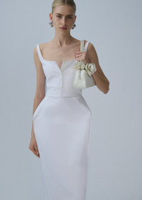 A cotton midi dress with an exaggerated hourglass shape created through hip pads, complete with a button up chest detailing. Details ID: 154725 Shell 100% Coton Lining 100% Silk Sizing This piece fits true to size. We recommend you get your regular size. Model is 180 cm and is wearing a size 34.