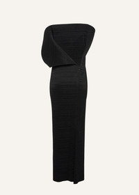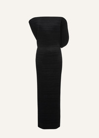 A narrow, ankle-length dress with sculptural silhouette. The design features a dramatic asymmetrical structure at the bodice with a wide, elevated neckline and open back down to the waist. Deep pleats contour the front, creating dimensional shape, while the internal waistband is secured with lingerie-style closures for added support. The dress fastens with a concealed zip at center back, finishing with a slit below for ease of movement. Details ID: 215925 Shell 100% Polyester. Sizing This piece fits true to size. We recommend you get your regular size. Model is 177 cm and is wearing a size 34.