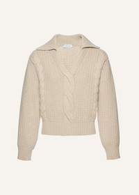 Cable-knit cashmere polo sweater in ivory