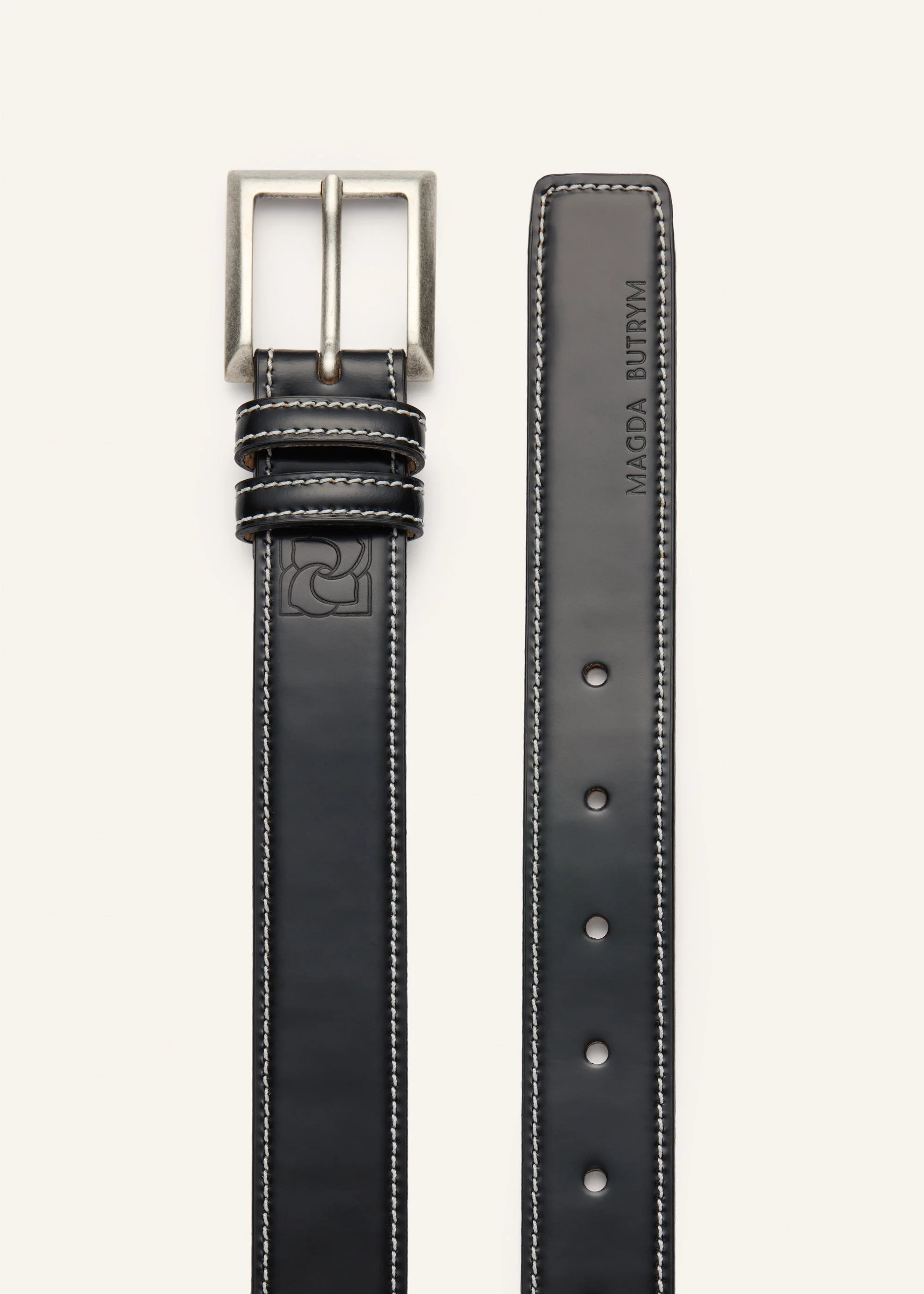 A timeless black leather belt featuring a sleek gold-tone square buckle for a polished finish. The minimalist design and adjustable fit make it a versatile wardrobe essential, perfect for cinching dresses or pairing with tailored trousers. Details ID: 401725 Shell 100% Cow Leather. Sizing Approximate measurements: 3 cm width, 74 cm to 91 cm length
