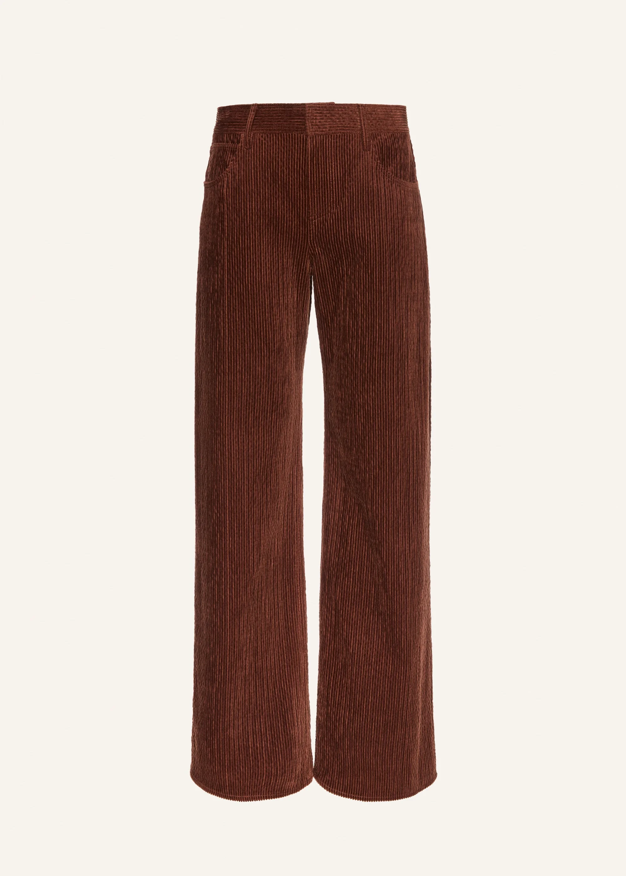 Corduroy trousers with a wide, straight-leg cut and a high waist. Designed with classic jeans-style rounded front pockets and decorative topstitching throughout. Fastens on the men's side with a short front zip closure and is finished with patch pockets at the back. Details ID: 137925 Shell 80% Cotton 19% Modal 1% Elastane. Lining 100% Silk. Sizing This piece fits true to size. We recommend you get your regular size. Model is 177 cm and is wearing a size 34.