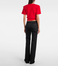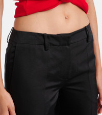 Shaking up the industry with its biting modernity and artisanal excellence, Magda Butrym exists to empower. These cotton and silk flared pants feature slit and buttoned pockets, plus a tailored front with zip, button, and hook fastening. Product Details - Material: 51% cotton, 49% silk - Care instructions: dry clean - Made in Poland - Designer color name: Black - Item color: black - Lining: 100% silk - Fully lined - Closure: zipper fly, button and hook fastenings - Belt loops - Pockets: slit pockets, buttoned pockets - Item number: P01083380 Size & Fit - True to size - Non-stretchy fabric - Slim-leg with a flared hem - Sits low on the hips - The model seen in the picture is 178cm-5'10" and wearing a size FR 36