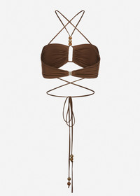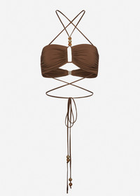 Criss-cross bandeau top in brown with beads