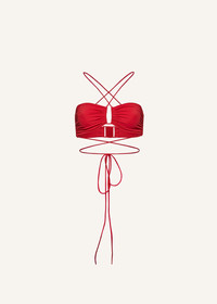 A bandeau style top which joins together in the middle with strings to create a keyhold sort of opening. The straps create a crisscross detail at the chest and in back, as well as underneath the bra on the abdomen. Details ID: 803721 Shell 75% Polyamide, 25% Elastane. Sizing This piece fits true to size. We recommend you get your regular size. Model is 178cm and is wearing a size 34.