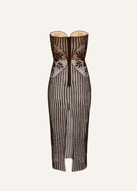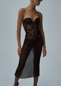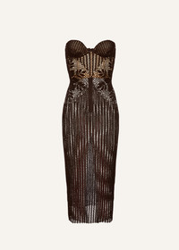 Strapless lace crochet bustier dress in brown