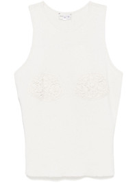 crochet-detailed top Highlights - White - Cashmere - Knitted construction - Crochet panelling - Round neck - Sleeveless - Racerback - Straight hem Made in Italy Composition Cashmere 100%, Cotton 100% SIZE & FIT Model measurements Height 5 ft 9 in(1.75 m) Bust/Chest 30.7 in(78 cm) Hips 35.03 in(89 cm) Waist 23.62 in(60 cm) FittingInformation Designed for a slim fit that sits just away from the body offering a close yet comfortable fit Made with a midweight knit, this piece offers some stretch