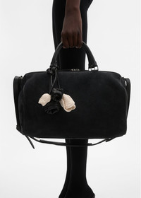 Handcrafted crochet rose charms attached to a sleek leather strap, designed as a delicate yet impactful accessory. These artisanal flowers bring a romantic touch to any look and are perfect for adding to a handbag, belt loop, or keychain. A signature blend of craftsmanship and romance. Available exclusively at magdabutrym.com and at the flagship boutique. Details ID: 980525 Flower: 100% Cotton, Belt 100% Sheep Leather. Sizing Approximate measurements: leather strap 40 cm, rose buds 6,5cm x 4,5cm.