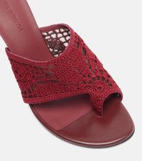 These thong sandals from Magda Butrym have hand-crocheted uppers and leather soles. Made in Italy, the pair has an almond-shaped open-toe design. Product Details - Upper: fabric - Lining: fabric, leather - Sole: leather insole and sole - Toe shape: almond open toe - Made in Italy - Includes: shoe box, dust bags - Designer color name: Burgundy - Item color: burgundy - Item number: P01063855 Size & Fit - True to size - European sizes - 11cm-4.5" heel (size EU 38)
