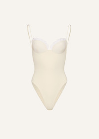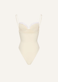 A sleek and elegant swimsuit with adjustable straps. Featuring delicate crochet detailing along the bustline, this one-piece creates a sophisticated beach look with its flattering neckline and structured cups. An essential addition to your swimwear collection. Details ID: 348525 Shell 75% Polyamide 25% Elastane Trim 100% Polyester Sizing This piece fits true to size. We recommend you get your regular size. Model is 174 cm and is wearing a size 34.