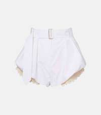 These shorts from Magda Butrym are made from a cotton blend and feature a matching fabric belt. Subtle crochet trims peek out from the wide legs. Product Details - Material: 56% cotton, 44% viscose - Care instructions: dry clean - Made in Poland - Designer color name: White - Item color: white, beige - Lining: 100% silk - Closure: zip, hook, and button fastening - Pockets: slant pockets, back pockets - Double pleat - Belt loops - Detachable belt - Item number: P01066050 Size & Fit - True to size - Adjustable at the waist - Non-stretchy fabric - Wide-leg - The model seen in the picture is 178cm-5'10" and wearing a size FR 36