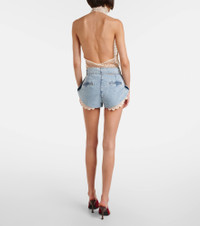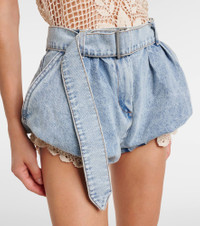 Shaking up the industry with its biting modernity and artisanal excellence, Magda Butrym exists to empower. These denim shorts are defined by a tonal belted waist, voluminous silhouette, and intricate crochet trims. Product Details - Material: 100% cotton - Care instructions: machine wash at 30 degrees - Made in Poland - Designer color name: Blue - Item color: blue - Belt loops - Attached belt - Closure: zip and button fastening - Pockets: slant pockets, back pockets - Item number: P01066046 Size & Fit - True to size - Adjustable at the waist - Non-stretchy fabric - Slim-leg - High-waisted - The model seen in the picture is 178cm-5'10" and wearing a size FR 36