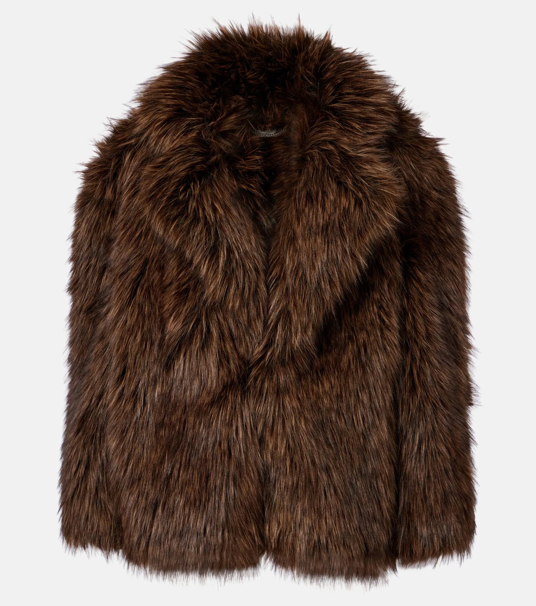 This jacket by Magda Butrym promises to warm up the cold season with its flamboyant aesthetic and warm fabrication. Crafted from plush material, the piece features a boldly cropped design that won't fear the lower temperatures. Product Details - Material: 100% polyester - Care instructions: dry clean - Made in Poland - Color: brown - Designer color name: Brown - Item color: brown - Lining: 100% cupro - Closure: hook-fastening front - Pockets: side slit pockets - Item number: P01130866 Size & Fit - True to size - Oversized - Non-stretchy fabric - Falls below the hip - The model seen in the picture is 178cm-5'10" and wearing a size FR 36