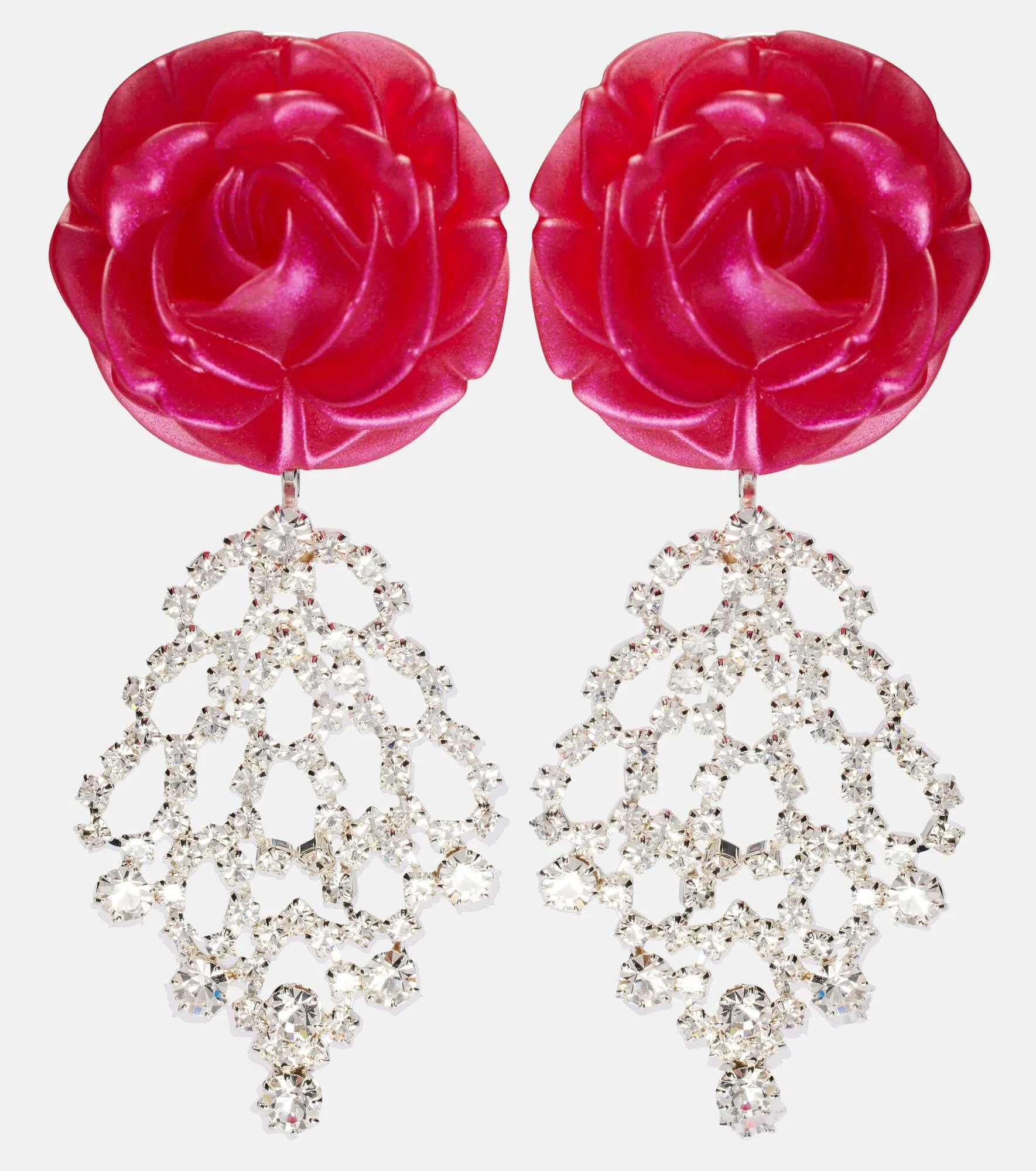 Shaking up the industry with its biting modernity and artisanal excellence, Magda Butrym exists to empower. Crafted from resin and brass, these drop earrings exude romance with their pink rose and crystal embellishments. Product Details - Material: resin, brass, crystals - Made in Poland - Item color: pink - Includes: dust bag, box - Item number: P01084066 Size & Fit - Length 8.5cm-3.5" - Max. width 3cm-1"