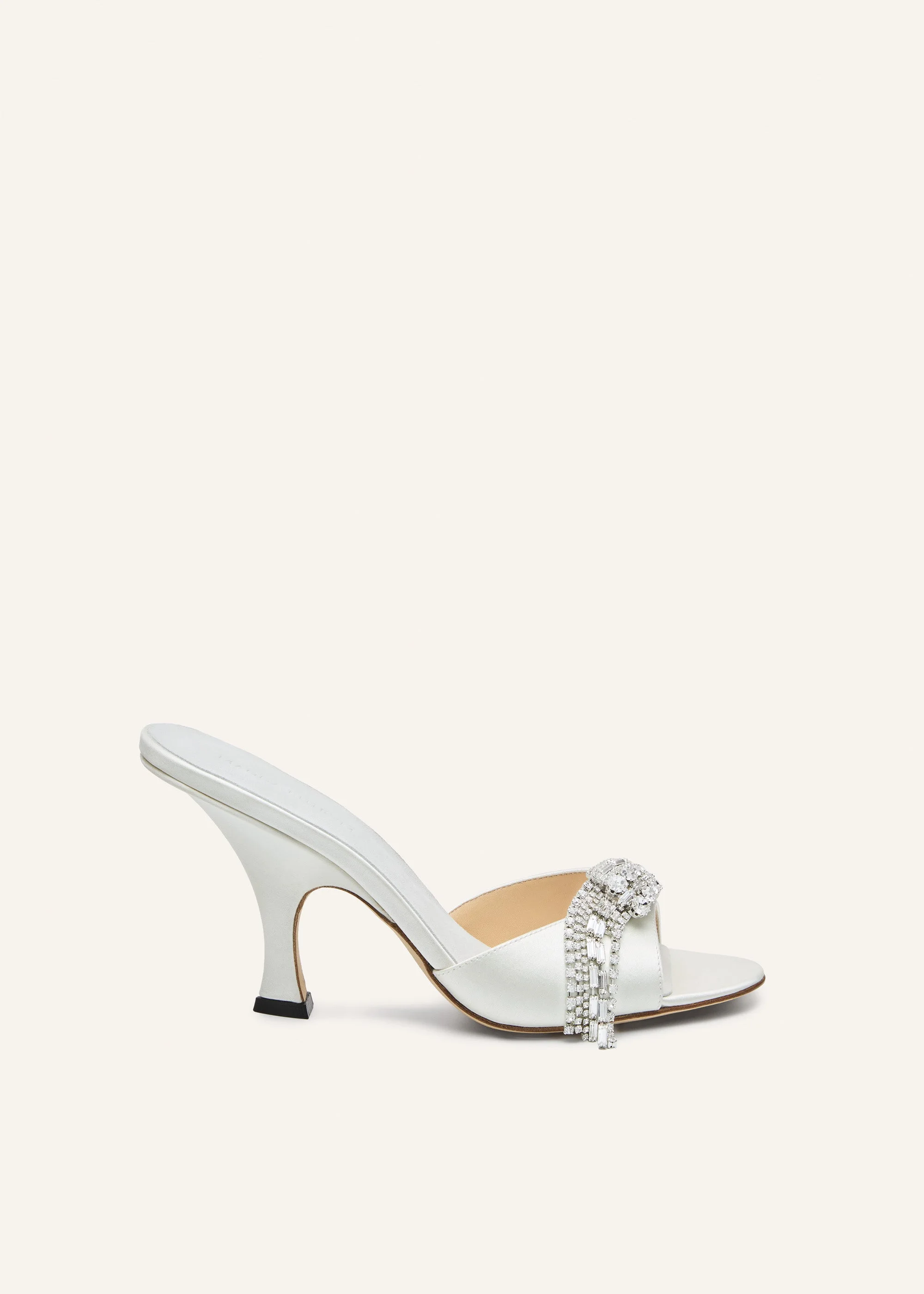 Crystal-embellished satin mules in white