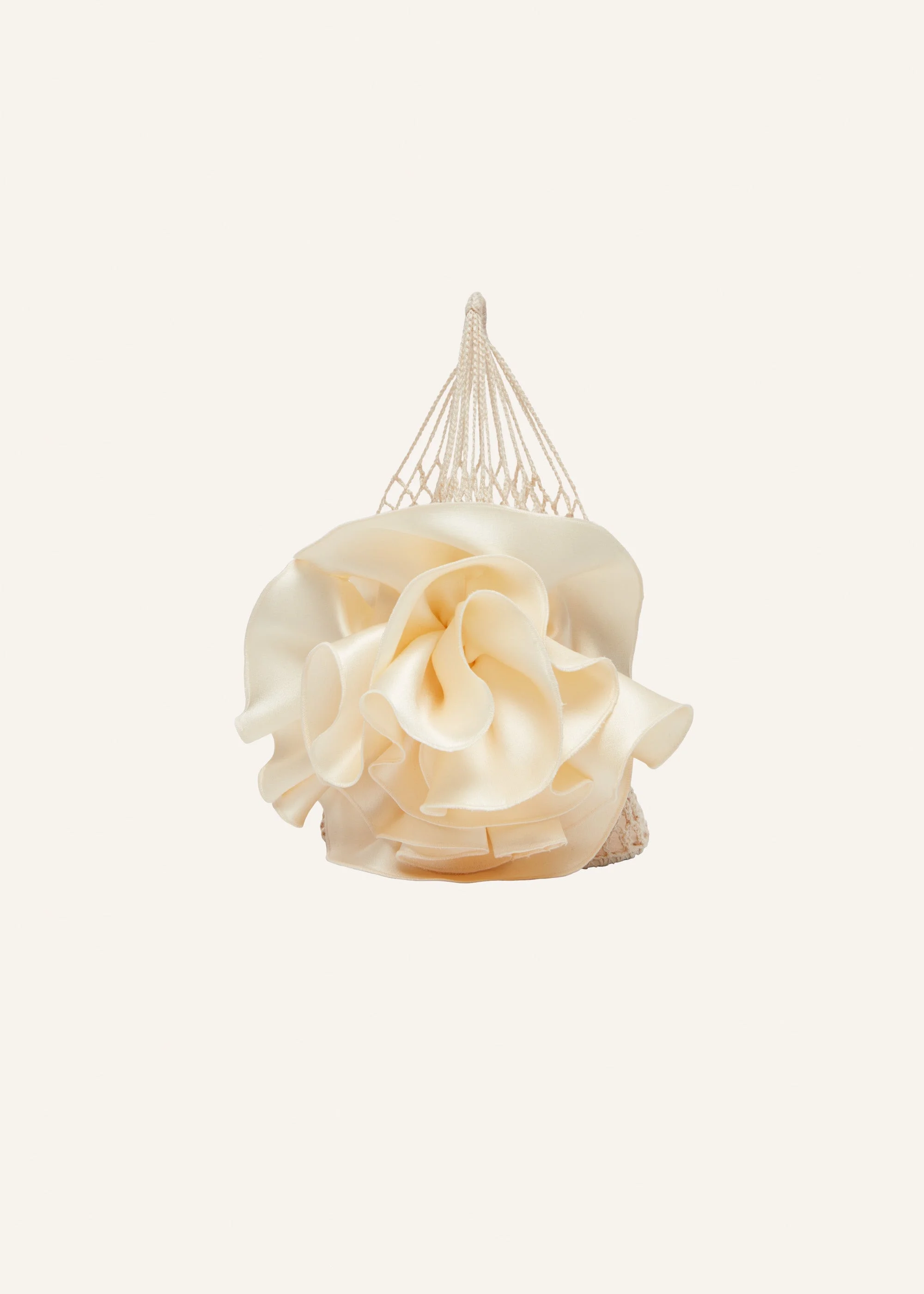 The Devana bag is a tote bag made from large netted crochet using natural fibers, creating the perfect bag for summer. A large satin flower adorns the front of the bag. Small size. Details ID: 712523 Bottom: Calf Leather, Body: 75%Cotton 25% Viscose, Flower: Satin (100% Silk) Sizing Approximate measurements: 27cm height, 15cm depth (at bottom)