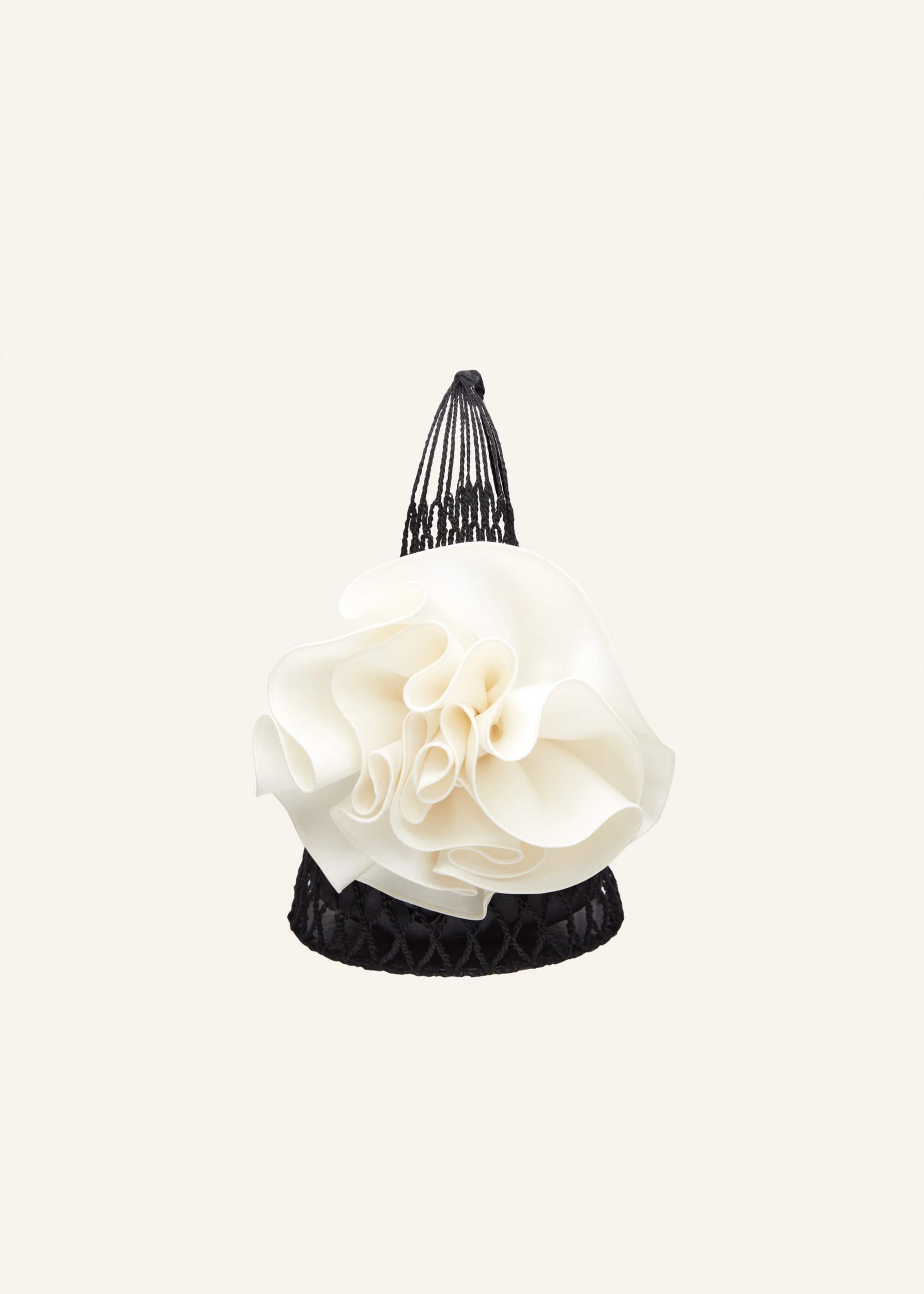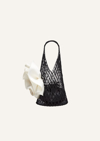 The Devana bag is a tote bag made from large netted crochet using natural fibers, creating the perfect bag for summer. A large satin flower adorns the front of the bag. Small size. Details ID: 607424 Bottom Calf Leather. 75% Cotton 25% Viscose. Flower 100% Silk. Sizing Approximate measurements: 27cm height, 15cm bottom depth