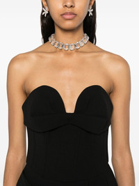 sweetheart corset minidress Highlights - Black - Wool blend - Corset style - Sweetheart neck - Concealed rear zip fastening - Strapless - Boned bodice - Ruched bodice - Straight hem - Thigh-length - Silk lining Imported Composition Outer: Wool 96%, Spandex/Elastane 4% Lining: Silk 100% SIZE & FIT Model measurements Height 5 ft 9 in(1.76 m) Bust/Chest 31.1 in(79 cm) Hips 36.61 in(93 cm) Waist 24.8 in(63 cm) Measurement CHEST 33.85 in(86 cm) HIPS 35.43 in(90 cm) LENGTH 25.59 in(65 cm) WAIST 29.92 in(76 cm) FittingInformation Designed for a slim fit that sits just away from the body offering a close yet comfortable fit Made from a midweight stretch fabric, this piece offers elasticity and flexibility when worn This piece fits true to size – take your usual size Washing instructions Dry Clean Only