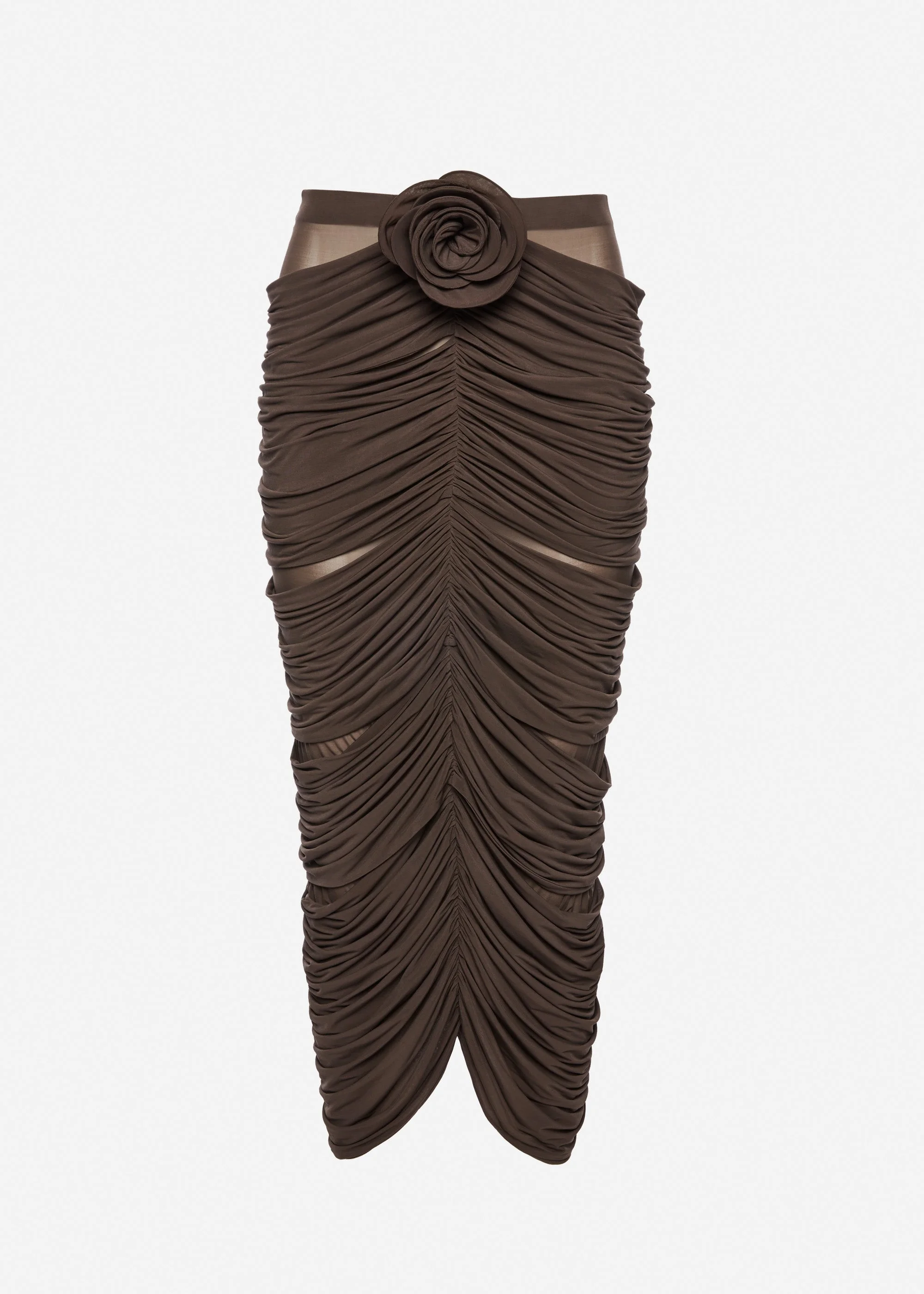 Draped flower-detail midi skirt in brown