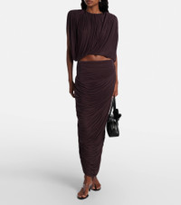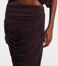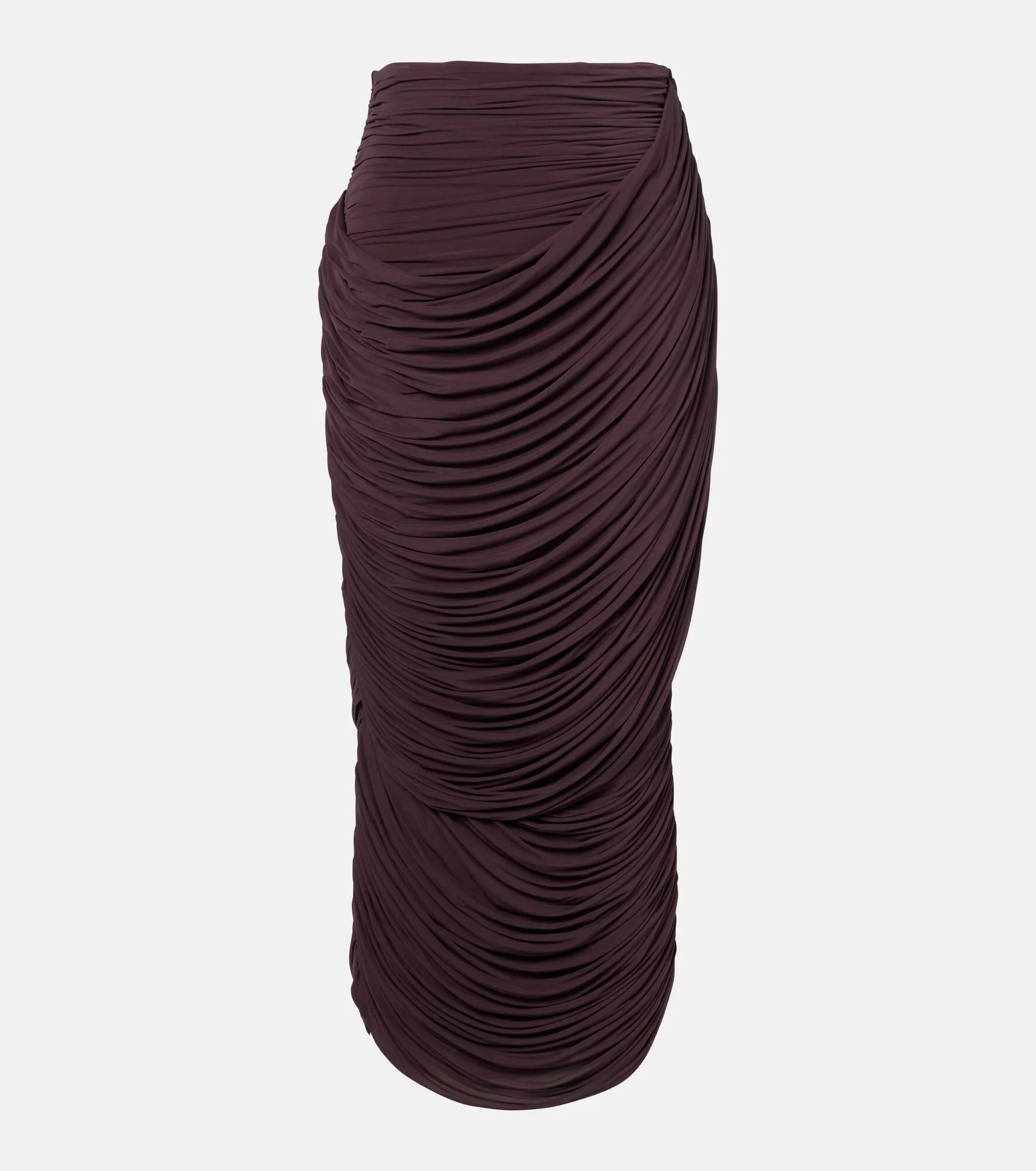 Magda Butrym aims to empower with sharp modern style, expertly delivered through artisanal excellence. This maxi skirt is designed with a high-rise silhouette and sculpts the figure with its refined all-over draping. Product Details - Material: 92% cupro, 8% elastane - Care instructions: dry clean - Made in Poland - Designer color name: Bordeaux - Item color: burgundy - Item number: P01086773 Size & Fit - True to size - Elasticated waist - Stretchy fabric - The model seen in the picture is 178cm-5'10" and wearing a size FR 36