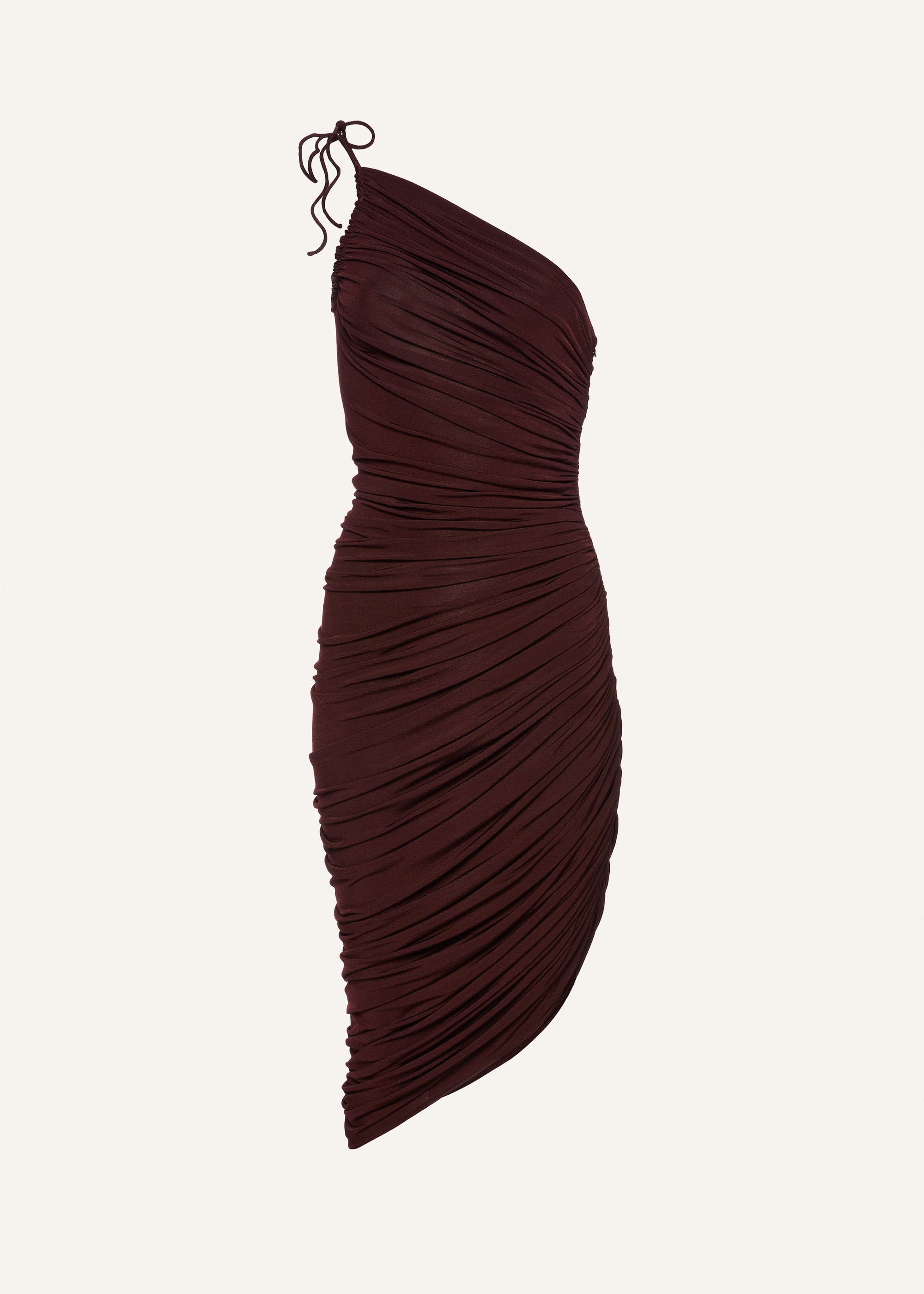 A strappy one-shoulder dress with an asymmetrical hemline and all over draped fabric detailing. Details ID: 124525 Shell 83% Viscose 11% Polyamide 6% Elastane Sizing This piece fits true to size. We recommend you get your regular size. Model is 178 cm and is wearing a size 34.