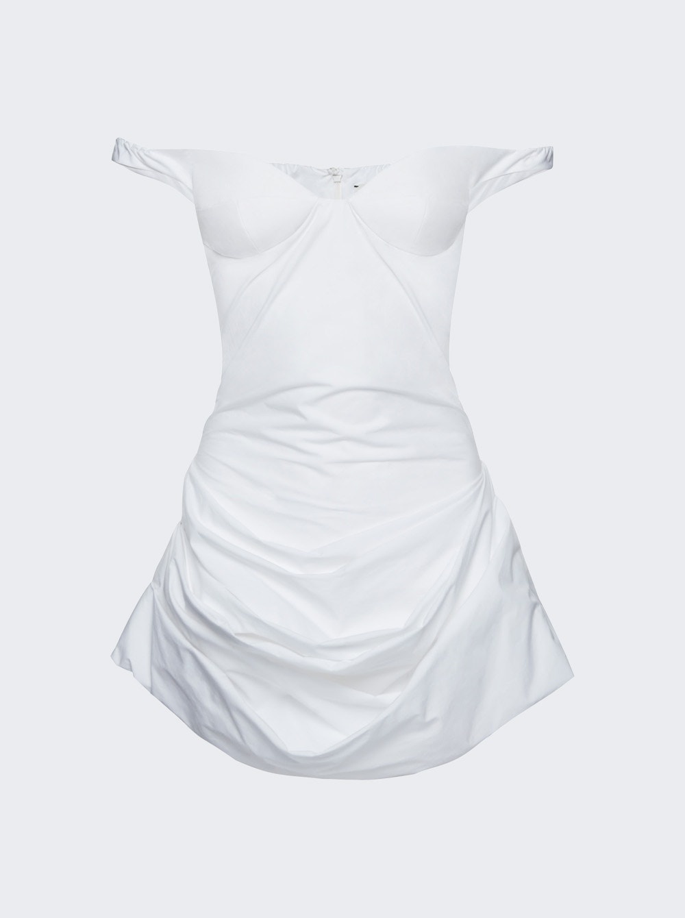 Details - Of the shoulder sleeves - Bustier neckline - Draped to create a dramatic effect at the hips - Topstitching Dimensions: Model is 5'9"/175cm and is wearing a size FR36 Composition: 100% Cotton Care: Care according to label Brand Style: 106524 Designer/Brand: MAGDA BUTRYM