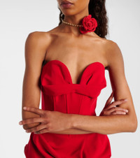 With its bold modernity and artisanal craftsmanship, Magda Butrym designs to empower. This flaming-hot red bustier dress is crafted from cotton and features a sweetheart neckline, a mini length, and alluring draping at the skirt. Product Details - Material: 96% wool, 4% elastane - Care instructions: dry clean - Made in Poland - Designer color name: Red - Item color: red - Lining: 90% silk, 10% elastane - Closure: zipped back - Boning - Fully lined - Item number: P01084037 Size & Fit - Fits large to size - we recommend trying one size smaller - Strapless - Internal boned corset for support - Fitted - Non-stretchy fabric - The model seen in the picture is 178cm-5'10" and wearing a size FR 34
